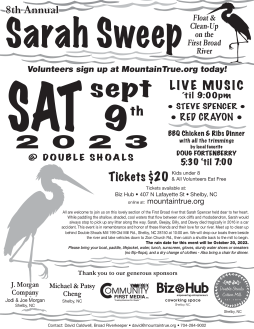 8th Annual Sarah Sweep on the First Broad River - September 9