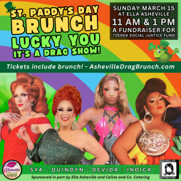 The annual St. Patty’s Day Drag Brunch lands at the end of the rainbow at The Hideaway with Ella Events on Sunday, March 15th, with seatings at 11:00 a.m. and 1:00 p.m. Tickets start at $25 and include a decadent brunch by Celine and Company, with proceeds benefiting the Tzedek Social Justice Fund. Tickets are available at www.AshevilleDragBrunch.com. Leprechauns of all ages are welcome.